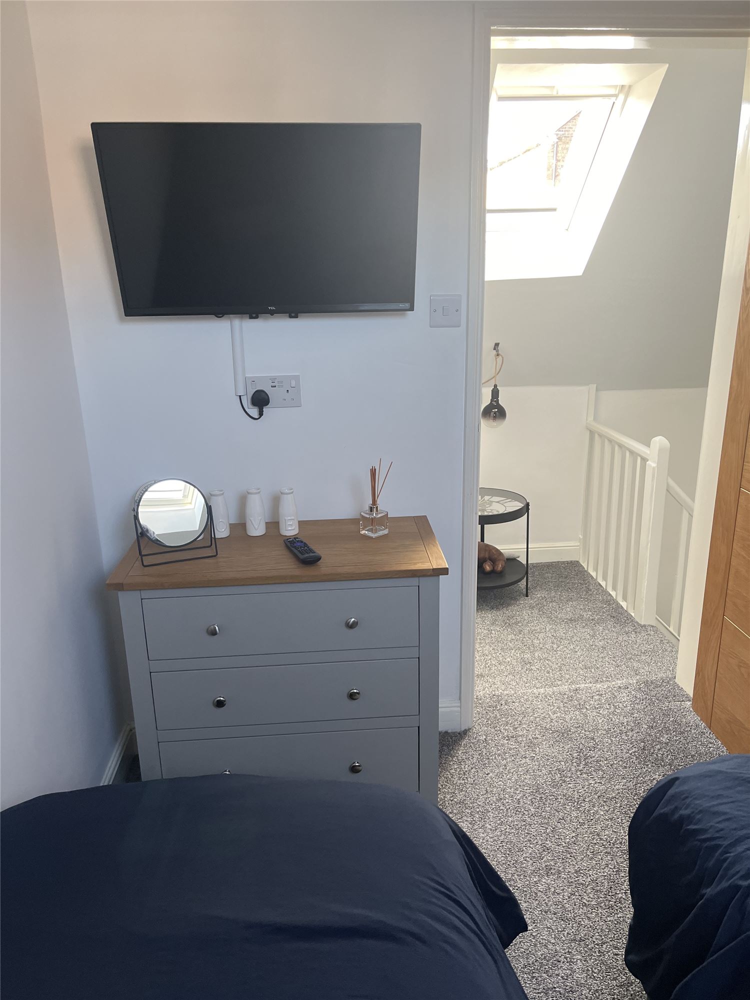 The cosy, twin bedroom has a SMART tv